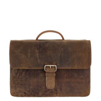 Plevier Flint Leren Dubbelvaks Laptoptas 15.6” bruin